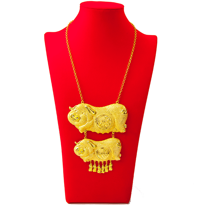 Luxury 24k Yellow Gold Plated Wedding Frosted Golden Pig Pendant Necklace for Women BrideTradition Wedding Necklaces Chains Gift Amber-45cm – Sumsfashion
